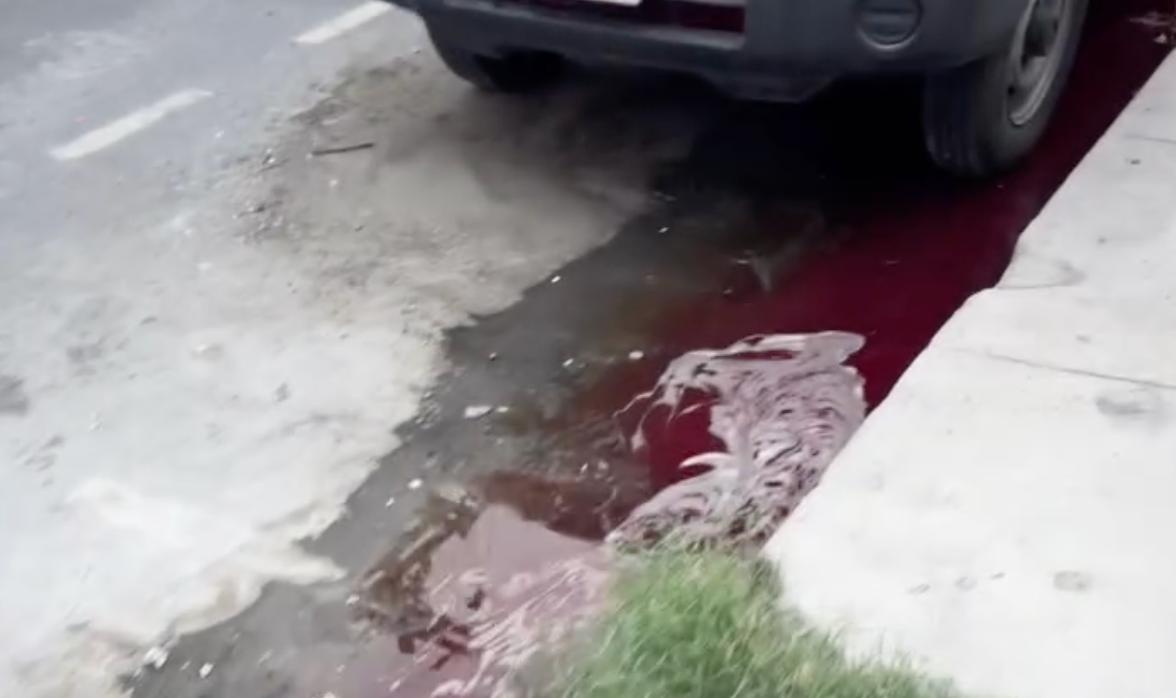 En redes circulan videos de lo que parece ser sangre humana estancada sobre el arroyo vehicular, dejando manchas en las llantas de vehículos estacionados.