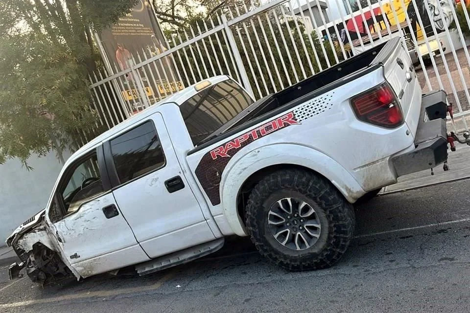 Autoridades acudieron para asegurar la camioneta y evaluar los daños a la infraestructura urbana, mientras se inició la revisión de cámaras para ubicar al responsable del percance.