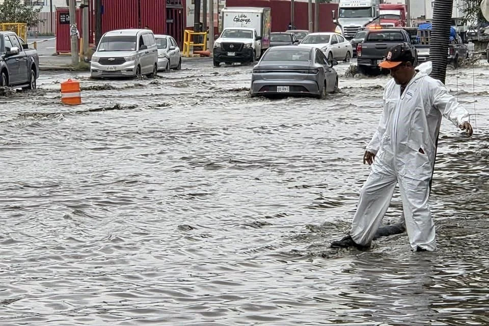 El resultado fue el encharcamiento de varios tramos de la vialidad, donde automovilistas reportaron daños al caer en baches y alcantarillas ocultas bajo el agua.
