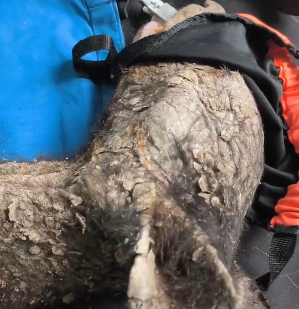 Este tipo de daño compromete la movilidad del oso, imposibilitándolo para alimentarse adecuadamente y generando cuadros de desnutrición y enfermedades secundarias, como la dermatitis severa que presenta.