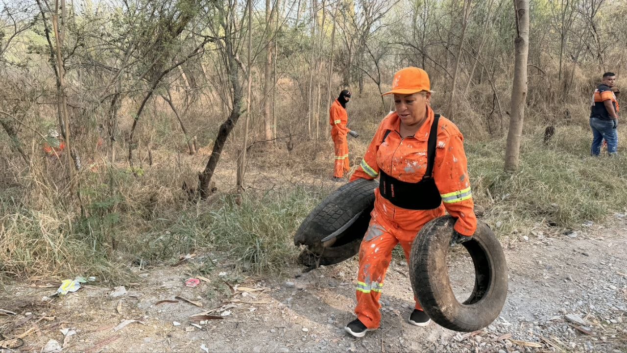 Casi mil 500 llantas han sido sacadas del Río Santa Catarina por el voluntariado de la Secretaría de Participación Ciudadana del Estado.